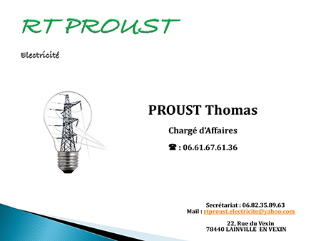 L’entreprise RT PROUST est spécialisée en électricité. Nous proposons nos services dans les Yvelines (Lainville-en-Vexin, Mantes-la-Jolie, Mantes-la-Ville, etc.).